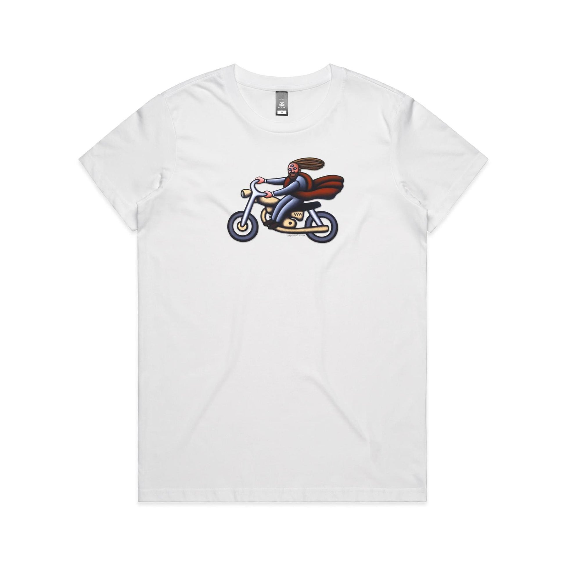 Australian Jesus on the Golden Motorbike T Shirts for Women