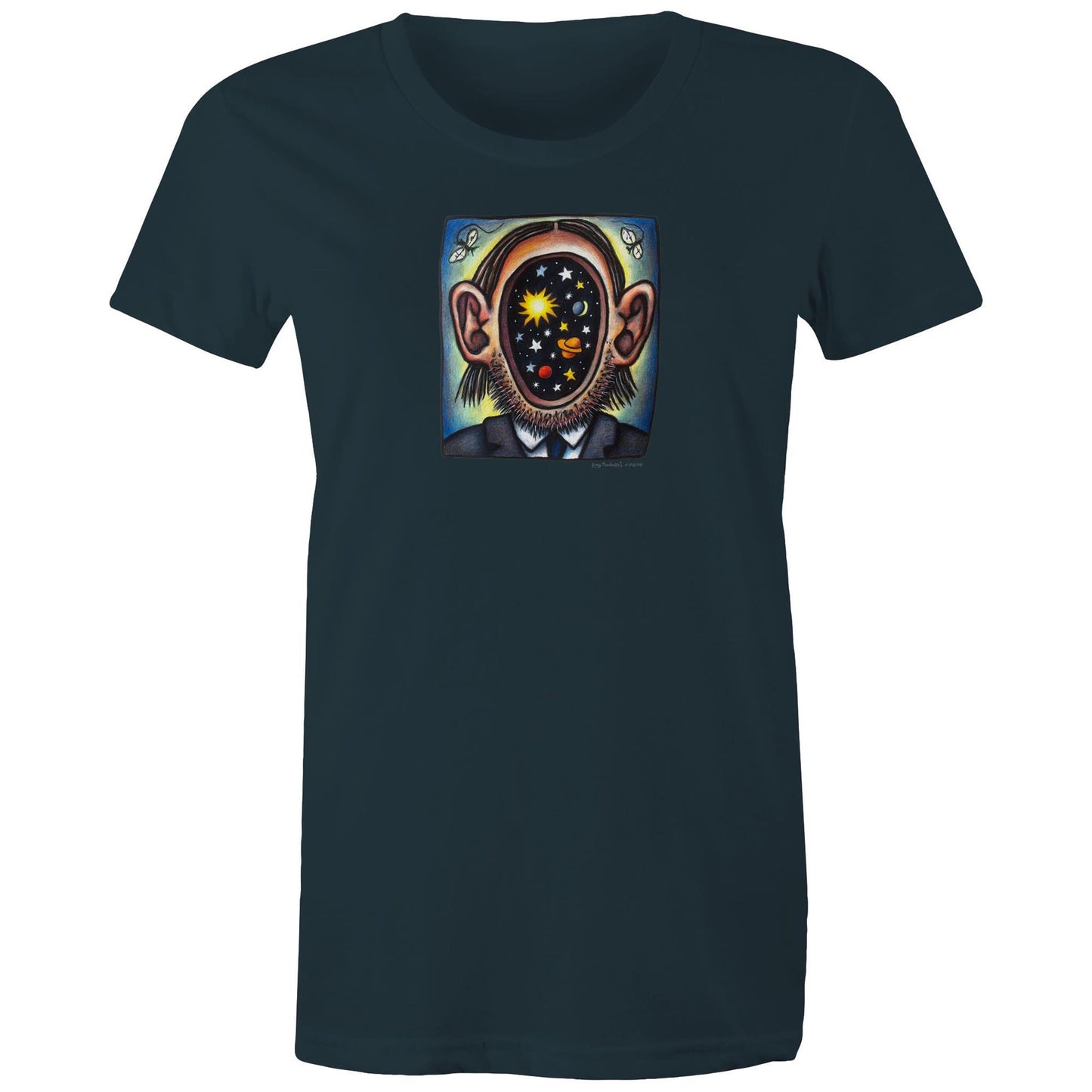 "This picture is a rough depiction of my head with a segment of the universe seen through the facial cavity. We all contain the known universe and its history and appearance within our heads. Theoretically nothing exists until we contemplate it. Such is the nature of consciousness." ~ Chris O'Doherty aka Reg Mombassa