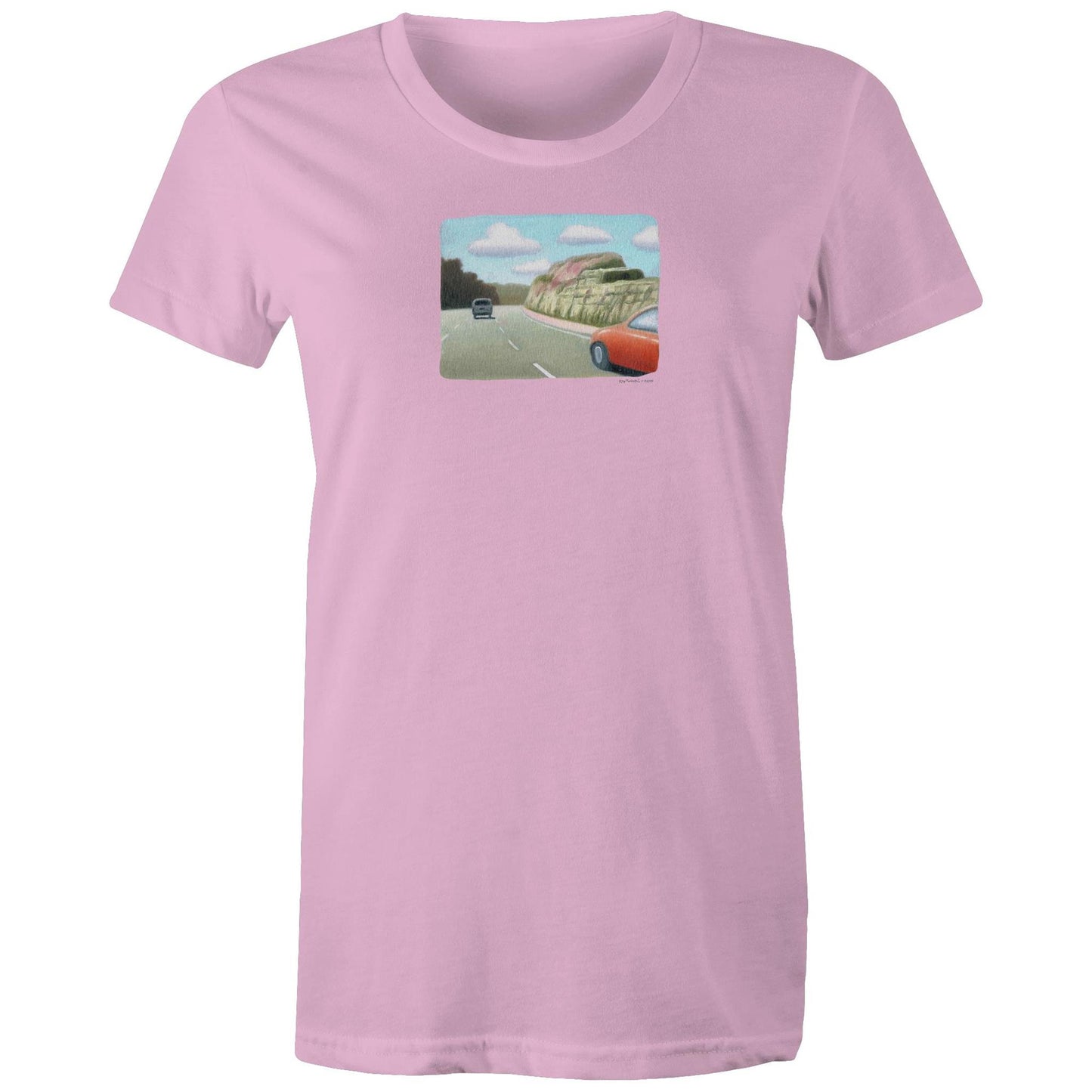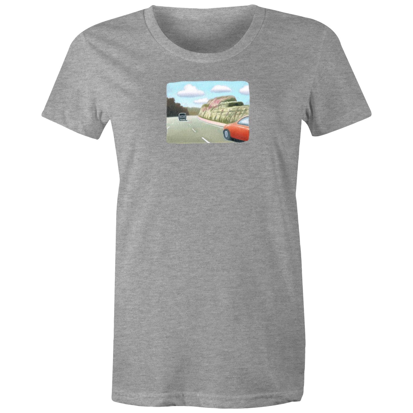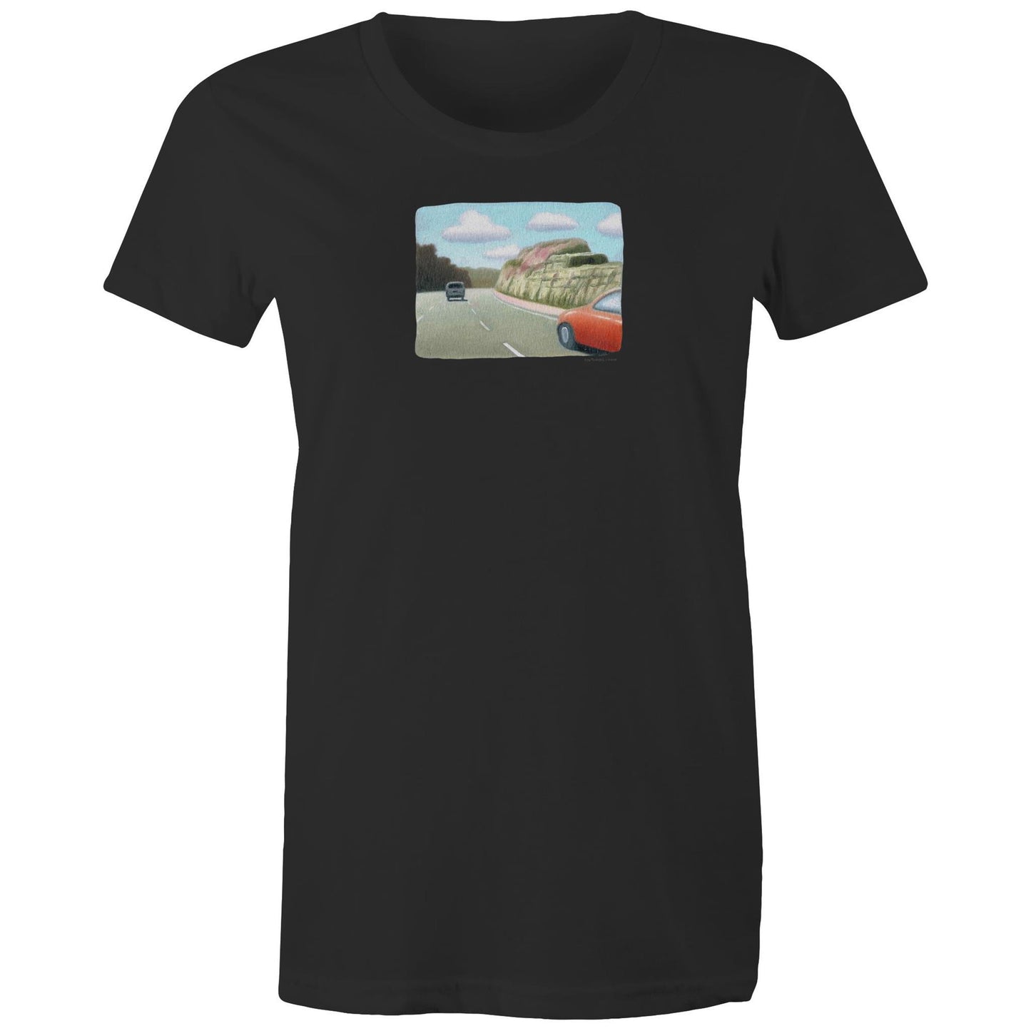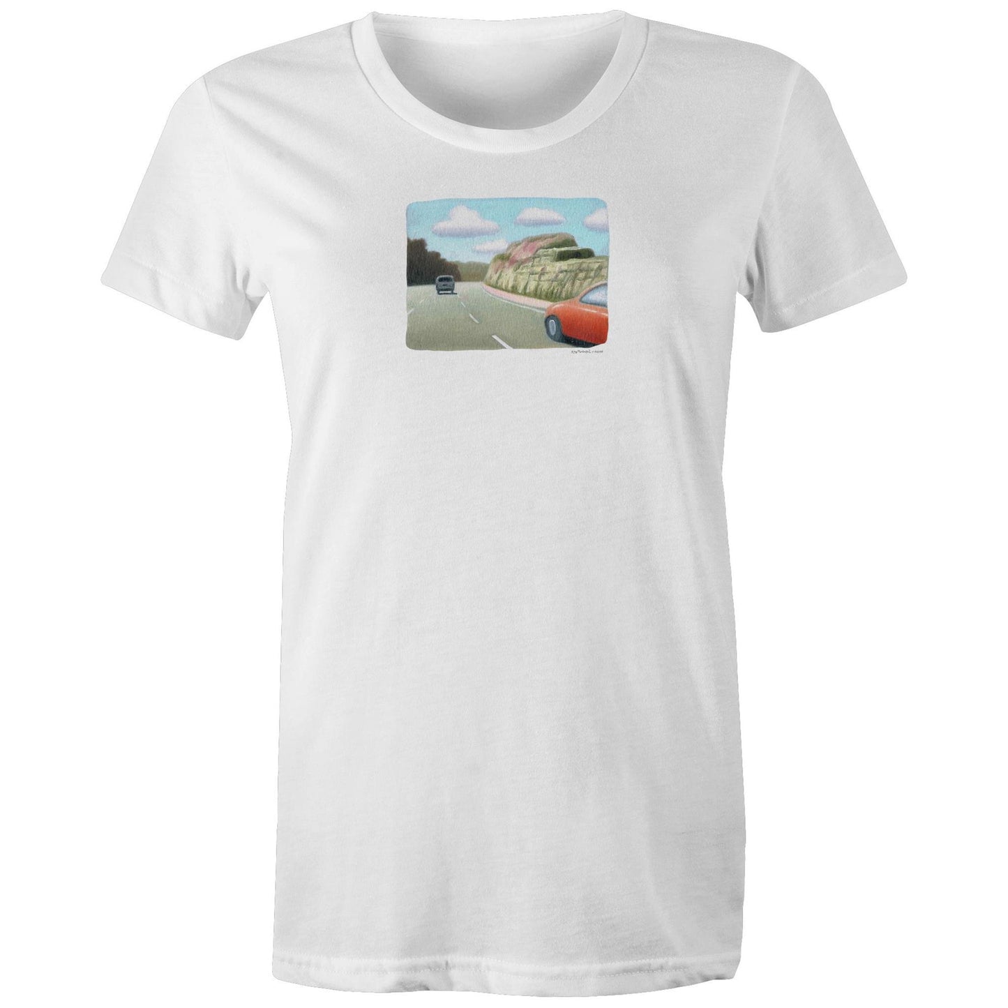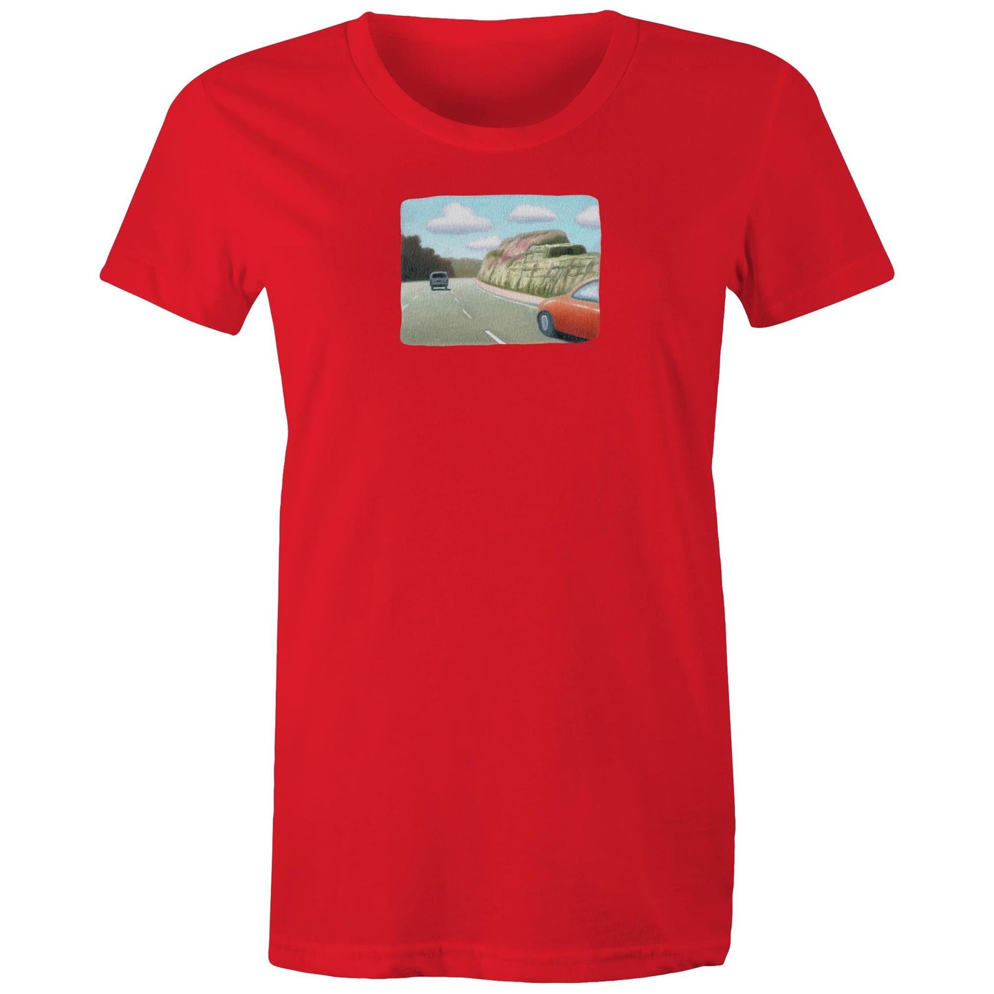 Red Sedan on the M1 T Shirts for Women