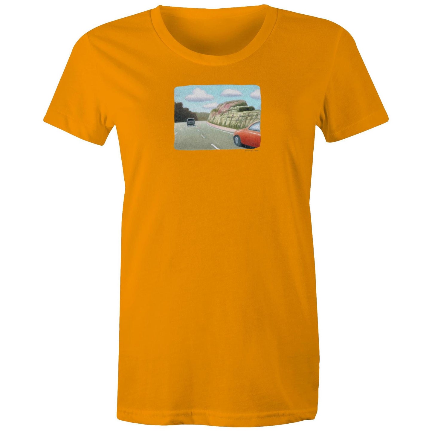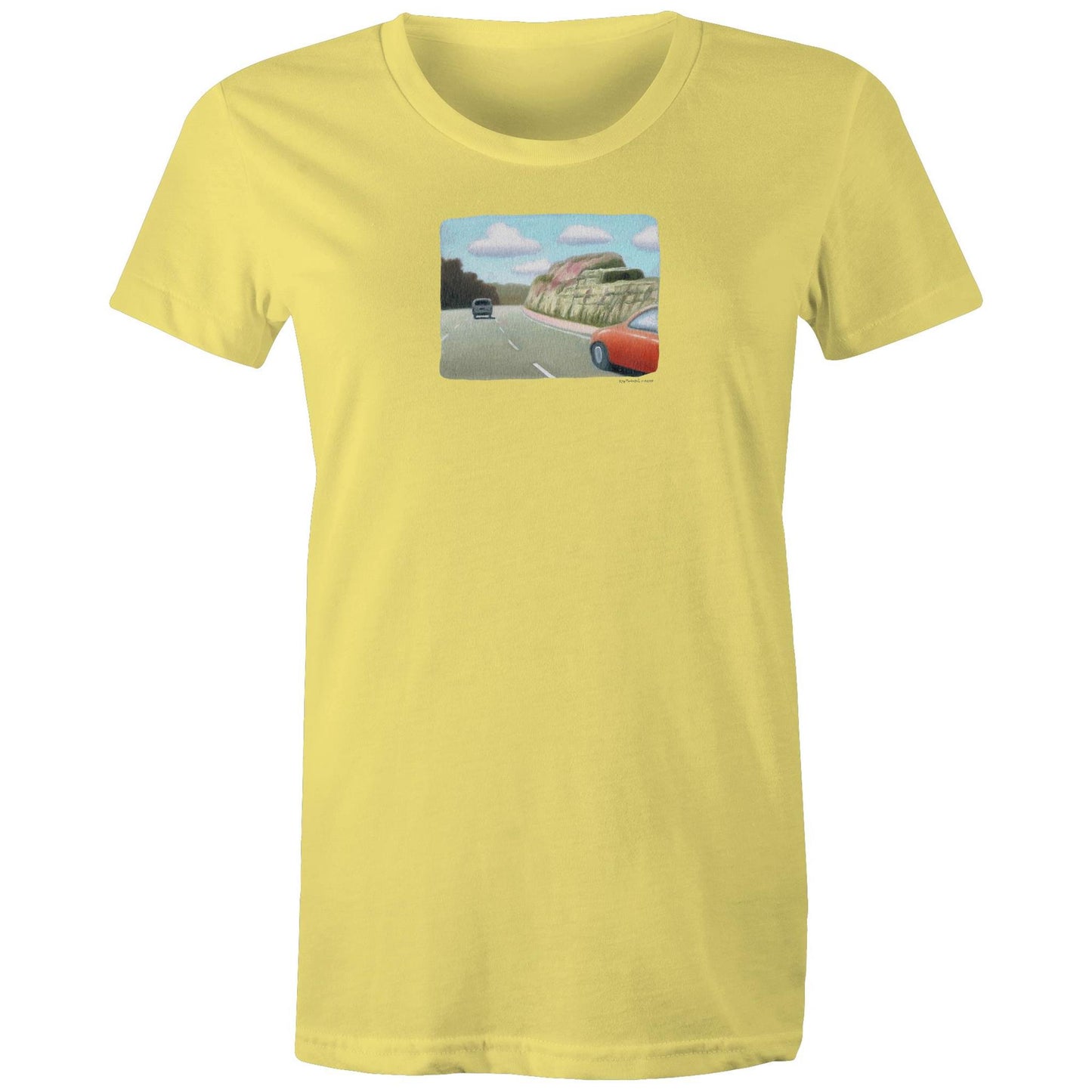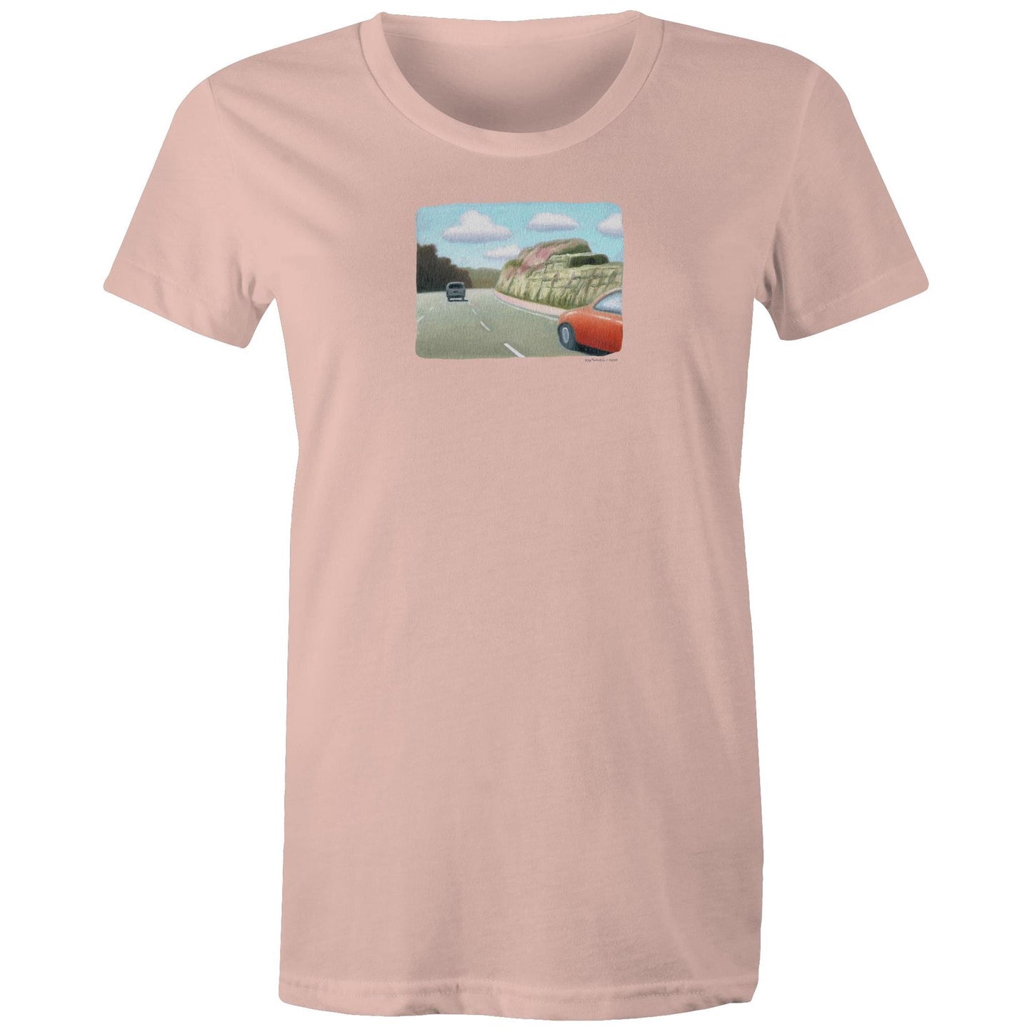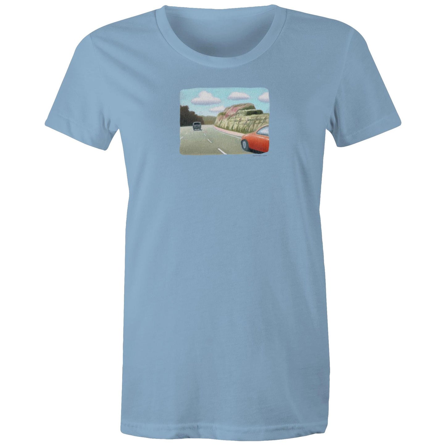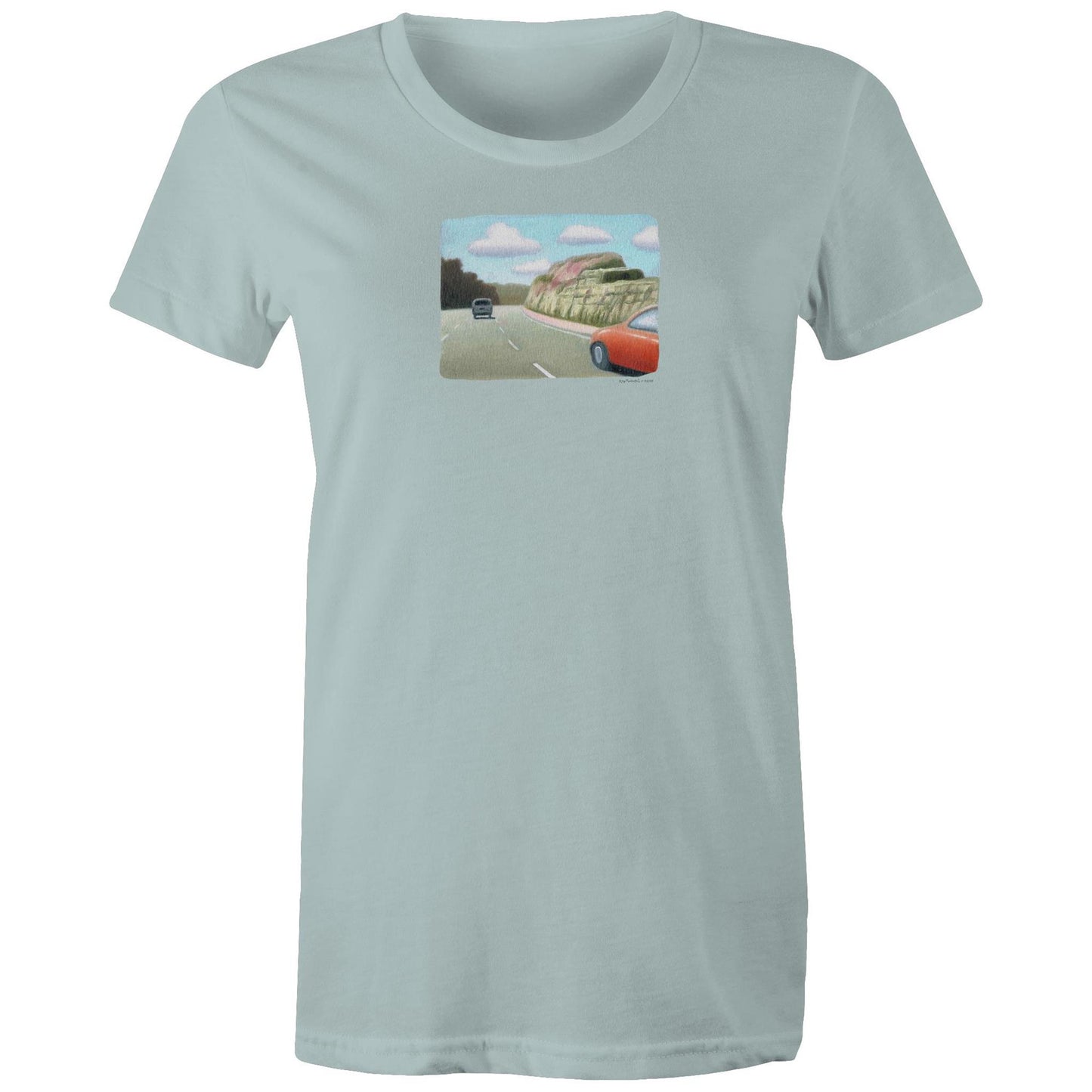 Red Sedan on the M1 T Shirts for Women